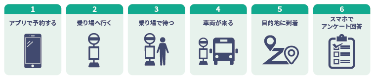 | 予約なし | 事前予約制 (アプリor電話) 15分後~実証終了日まで予約可能 |