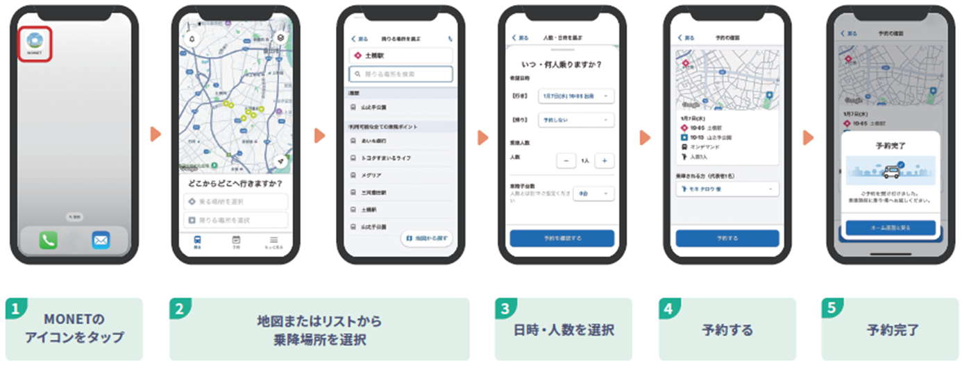 | ・事前にMONETアプリより予約の上、ご乗車ください。 |